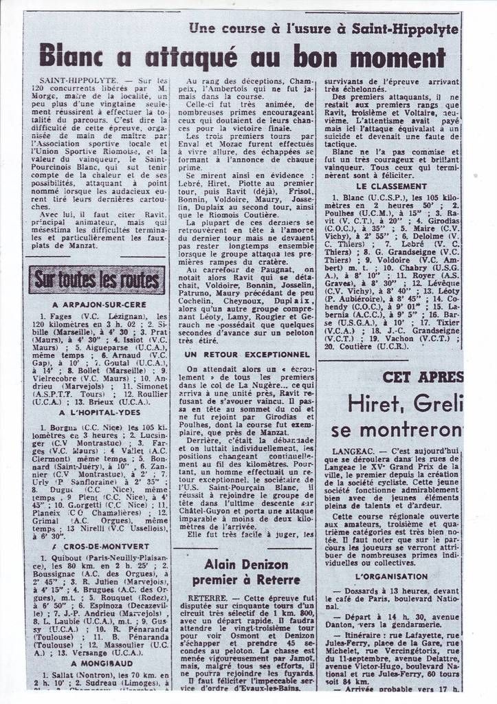Présent sur la route du Tour de Belfort à Saint-Etienne puis à titre personnel du côté de Bagnères-de-Bigorre afin d'assister au chrono de Pau et à la super étape du Tourmalet, sans oublier le départ de Saint-Flour, je serais donc dans l'impossibilité d'alimenter Véloquercy, seuls quelques résultats seront mis en ligne par des correspondants disponibles.