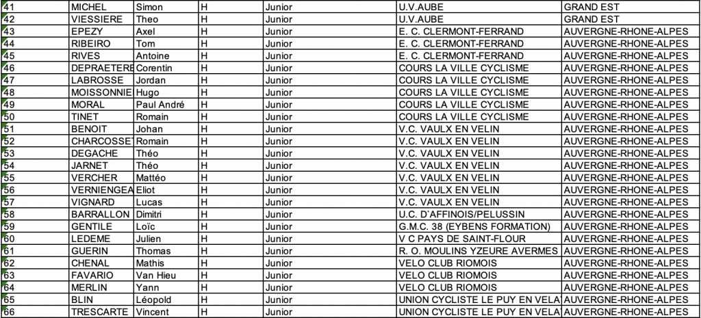 15 15 BLUY Maxence TEAM CYCLISTE CHATEL-GUYON Cadet C2 ''